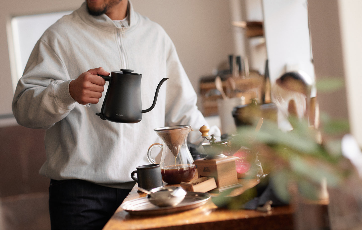 Not all kettles are created equal. Some rattle and roar, others drip and stutter, turning a simple task into something clumsy. BALMUDA The Kettle is different. Light in the hand, smooth in the pour—it moves with you, effortless and precise.